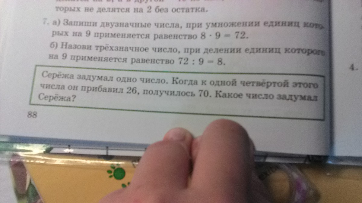 Решаем с обратной стороны: ( 70-26)*4= 176. Это число - 176. Проверка: 176:1/4+26=70.