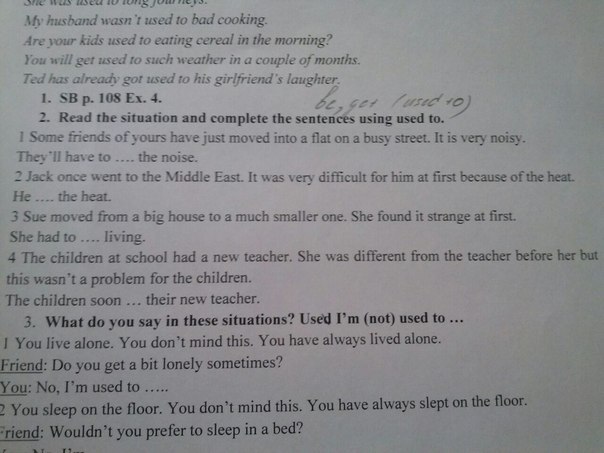 1)Some friends of yours have just moved into a flat on a busy street. It is very noisy.They'll have to get used to the noise.