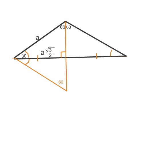 Тогда половина основания по формуле высоты равностороннего треугольника равна ( а √3):2