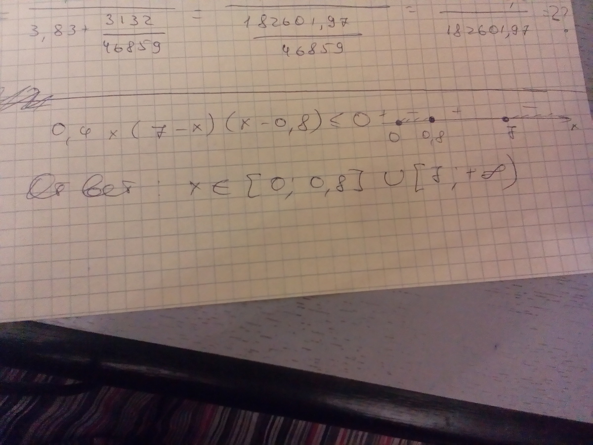 Тут методом интервалов, то есть на прямой отмечаешь точки пересечения и смотришь, где +, а где -