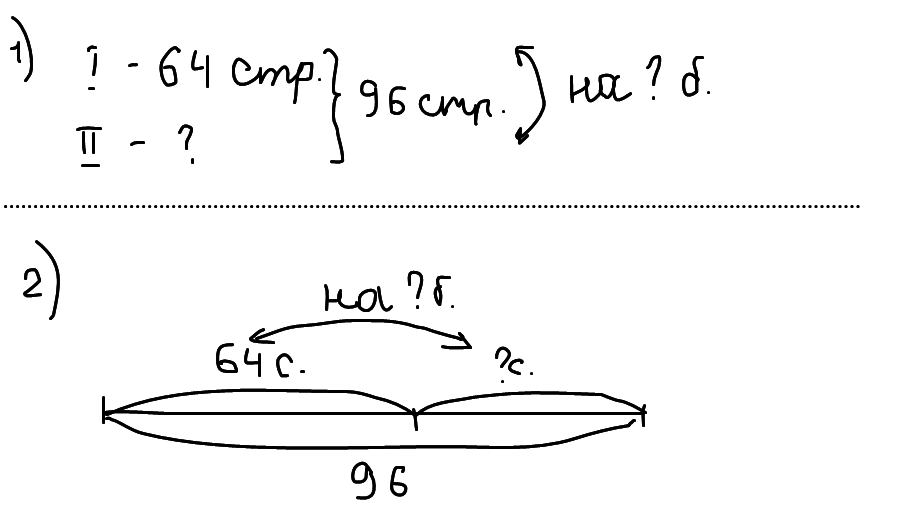 в двух книгах 96 страниц в первой из них 64 страницы на сколько больше страниц в первой книге чем во второй как составить условия задачи