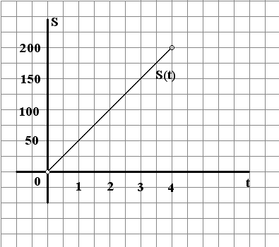 расстоянии s км, где 0 больше t меньше 4 1) задайте формулой зависимость s от t. 2)постройте график функции s(t).примените длину двух тетрадных клеток по оси абсцисс за 1ч,а по оси ординат 50 км. 3)запишите координаты точек пересечения графикас осью 0y можно быстро 20 балов