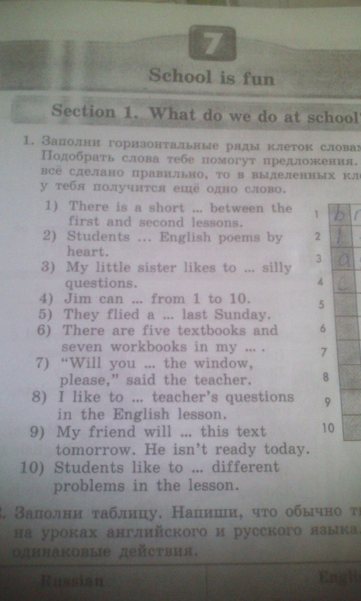 Заполни горизонтальные ряды клеток словами подобрать слова тебе