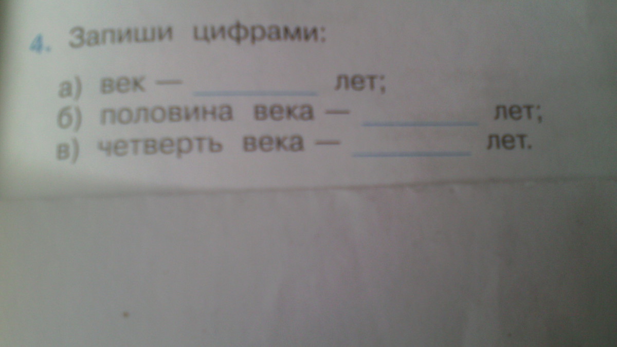 век-100 лет, пол века-50 лет, четверть века- 25 лет