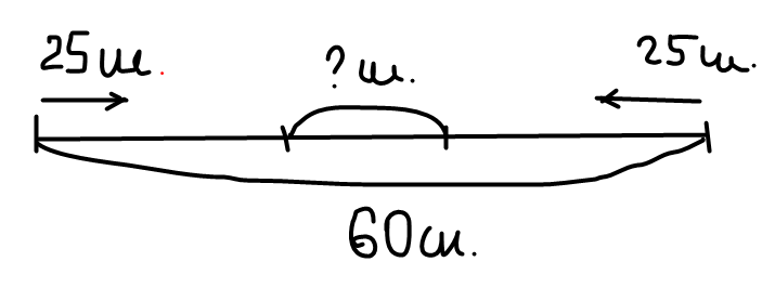 два мальчика стоят лицом друг к другу.расстояние между ними 60 шагов.какое расстояние будет между ребятами,если каждый сделает навстречу другому 25 шагов.