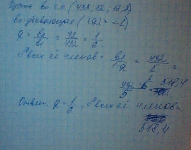 Хорошо,я найду два частных случая,знаменатель прогрессии и сумму всех членов,потому что прогрессия убывющая.