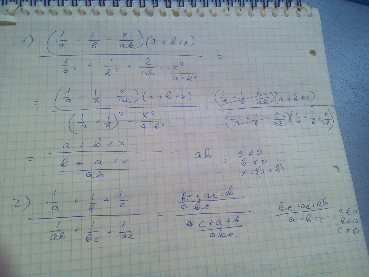 1) (1/a+1/b-x/ab)(a+b+x) : 1/a^2 +1/b^2 +2/ab - x^2/a^2 b^2