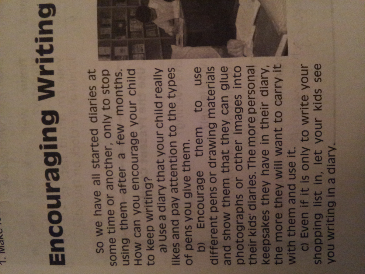 в) даже если этот дневник нужен только для того,чтобы писать в нем список покупок, позвольте вашим детям видеть, как вы пишете в дневнике.