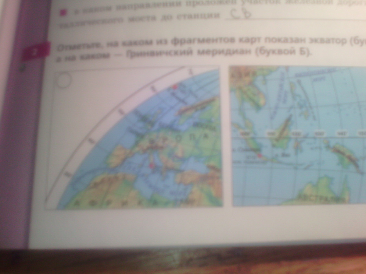 Определите на каком из фрагментов карт показан экватор (буквойА) а на каком Гринвичский меридиан (буквой Б)