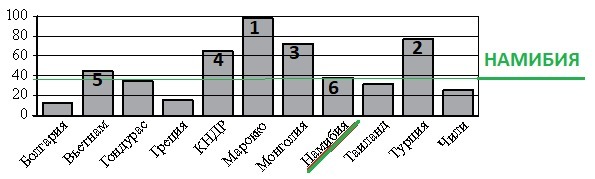 Достаточно на диаграмме провести линию соответствующую Намибии и пересчитать столбики которые ВЫШЕ этой линии.