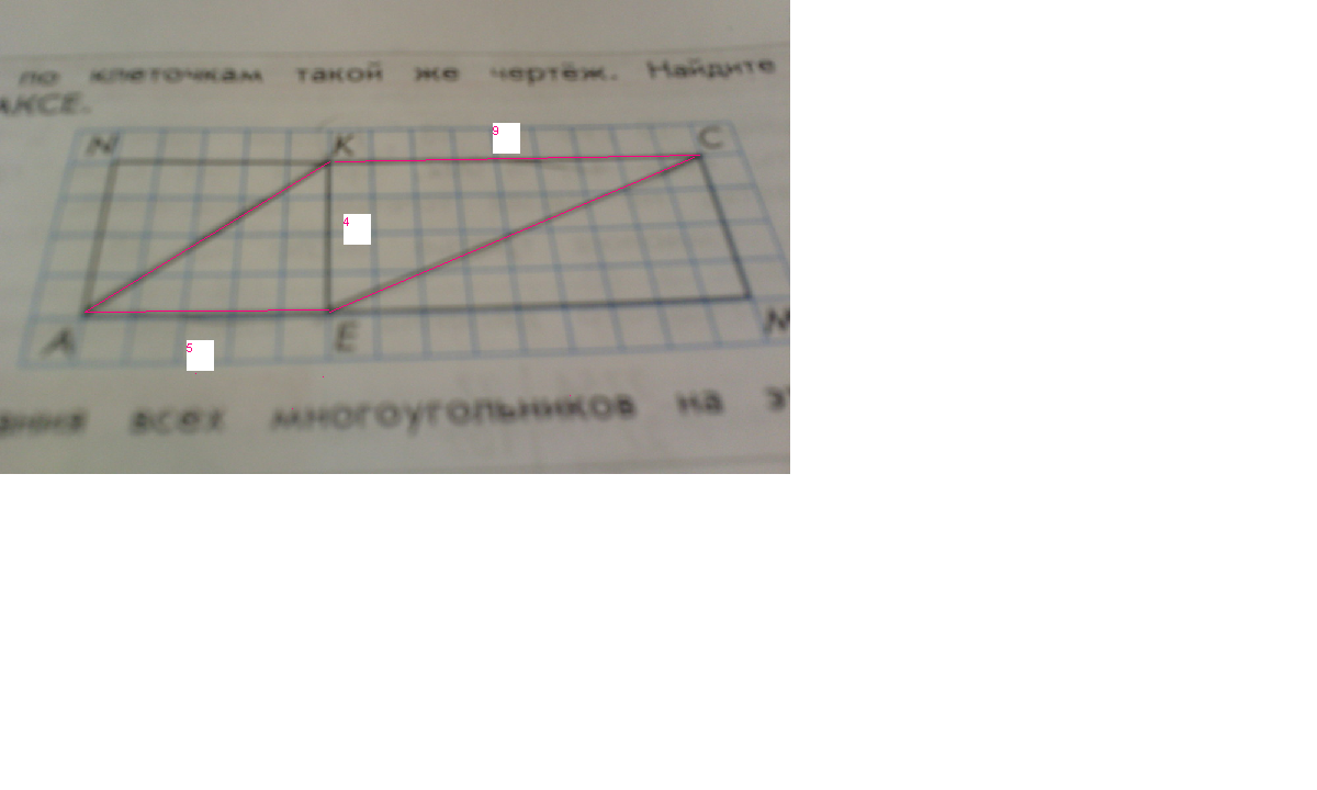 Выполните по клеточкам такой же чертёж. Найдите площадь четырёхугольника АКСЕ.