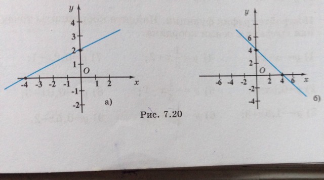 Запишите формулой линейные функции, графики которых изображены на рисунке 7.20(а, б).