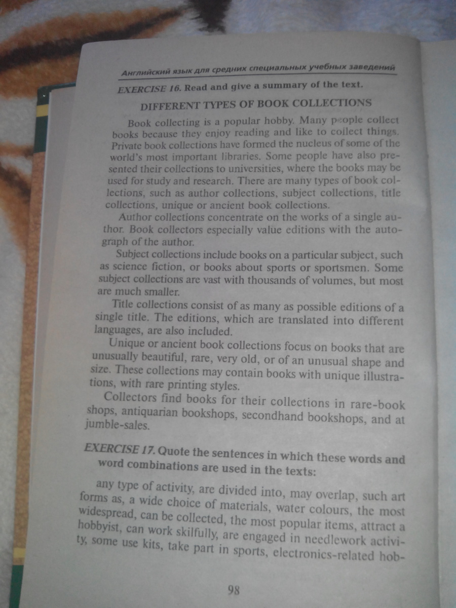 Коллекционирование книг - популярное хобби. Многие люди коллекционируют книги, потому что им нравится читать и коллекционировать вещи. Приватные книжные коллекции пополнили ряды крупных библиотек по всему миру. Некоторые люди отдают свои коллекции университетами, где книги могут быть использованы для учебы и научных целей. Существует много видов книжных коллекций: коллекции по авторам, по темам, по названиям, коллекции уникальных и древних книг.
