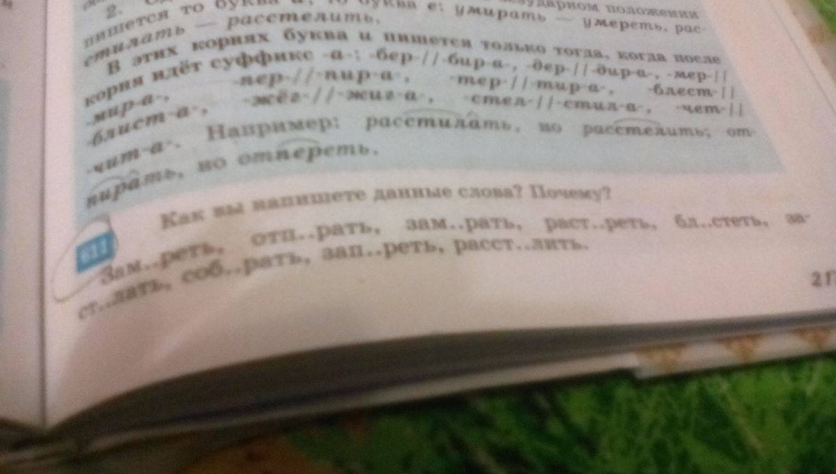 Замереть, отпирать, замирать, растереть, блестеть, застилать, собирать, запереть, расстелить. Если есть суффикс а- пишем и, а если нету суффикса, то е.