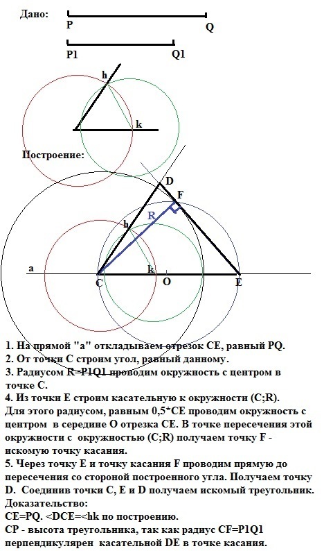 2. Даны отрезки PQ и P1Q1 и угол hk. Постройте треугольник СДЕ так, чтобы СЕ = PQ, ∠C = ∠hk, CF = P1Q1, где CF - высота треугольника. СРОЧНО ОЧЕЕНЬ,ДОБРЫЕ ЛЮДИ