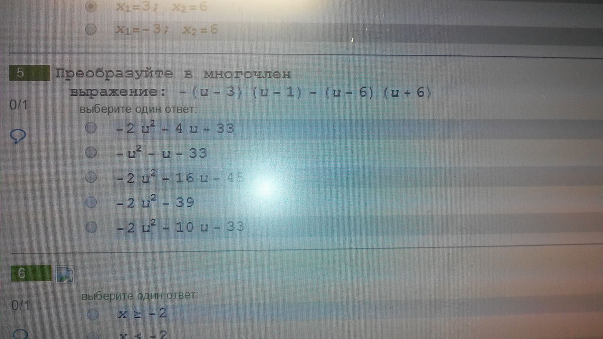 -(u-3)(u-1)-(u-6)(u+6)=-u^2+4u-3-u^2+36= \\ =-2u^2+4u+33