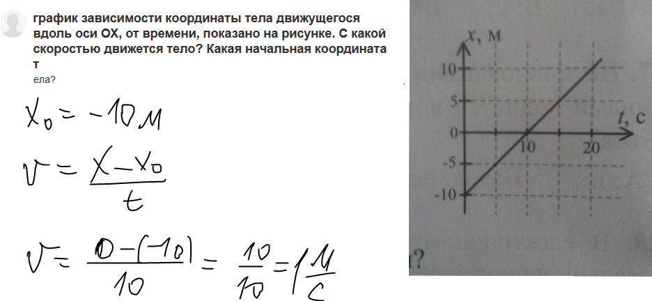 график зависимости координаты тела движущегося вдоль оси ОХ, от времени, показано на рисунке. С какой скоростью движется тело? Какая начальная координата тела?