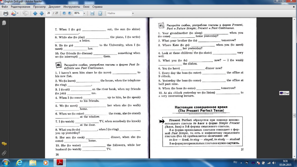 1) Was your grandfather sleeping / came 2) will your brother do 3) was Kate going / met 4) are skating 5) are you doing / am washing 6) Are you having 7) enters 8) came 9) will the boss come 10) were listening