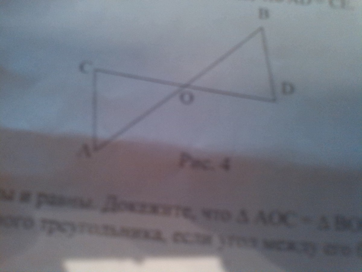 3.Отрезки AC и BD параллельны и равны.Докажите,что треугольник AOC = треугольнику BOD.(рис 4)