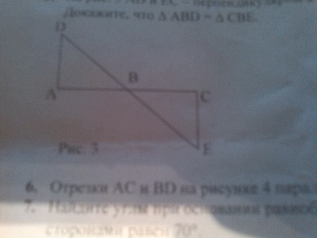 2.AD и EC - перпендикулярны к прямой AB,причем известно,что AD=CE.Докажите,что треугольник ABD = треугольнику CBE. (Рис 3 )