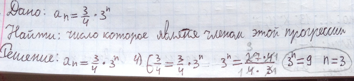 На фото решение все сделал ответ -правильный я только не пойму одно как в конце получается я обвел карандашом как можно перейти из 3^n=9 в n=3 просьба разъесните