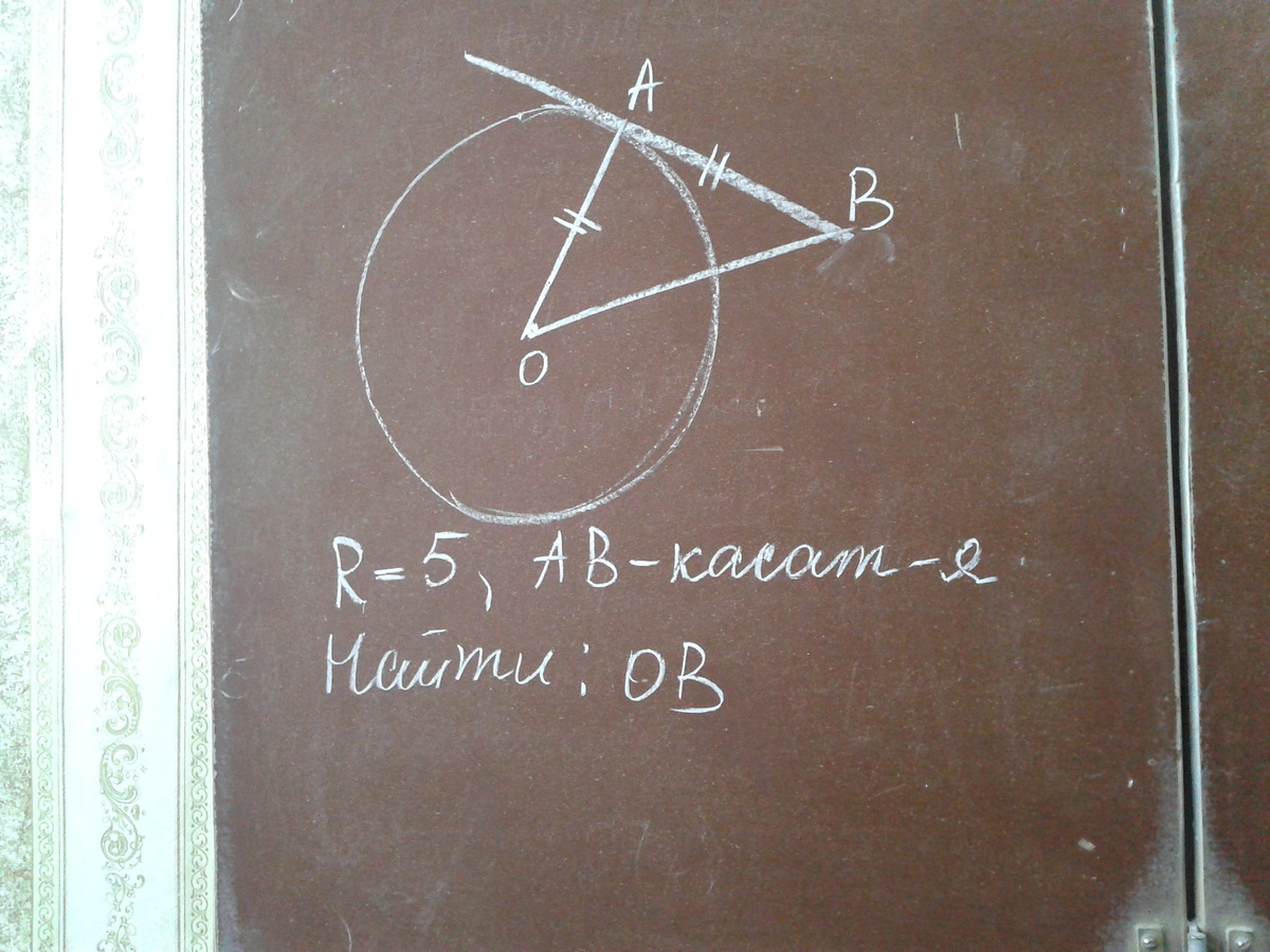 касательная к радиусу перпендикулярна, т.е. у нас прямоугольный треугольник.