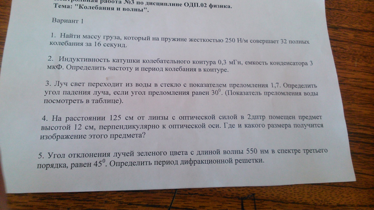 2) T=2*pi*sqrt(L*C)=6,28*sqrt(0,3*10^-3*3*10^-6)=18,84*10^-5 c