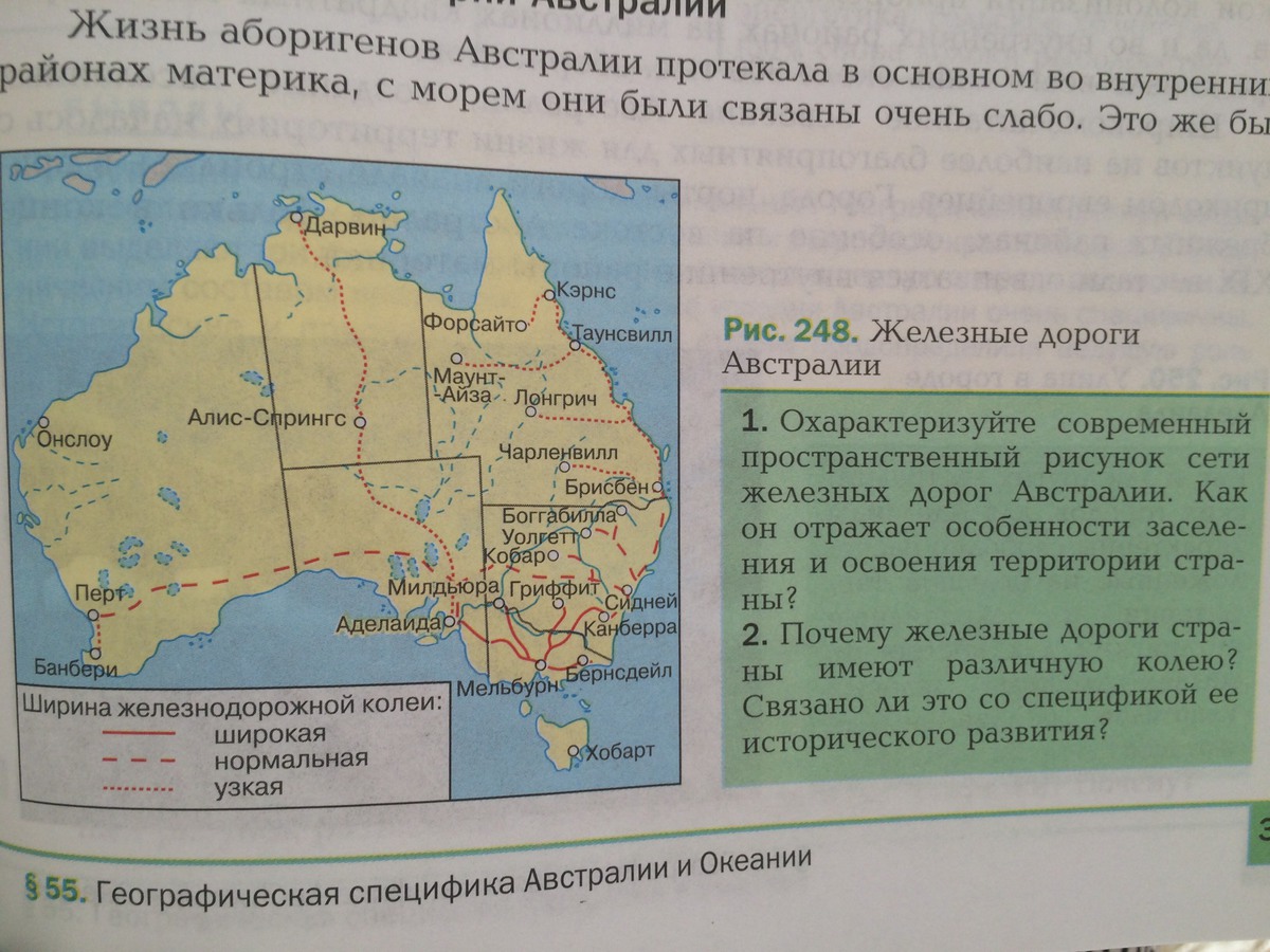 1.Да,если посмотреть на карту,то мы отчетливо увидим,что освоение и заселение материка Австралии шло усиленными темпами именно в прибрежных зонах юга и востока материка. Север и запад мало колонизированы.