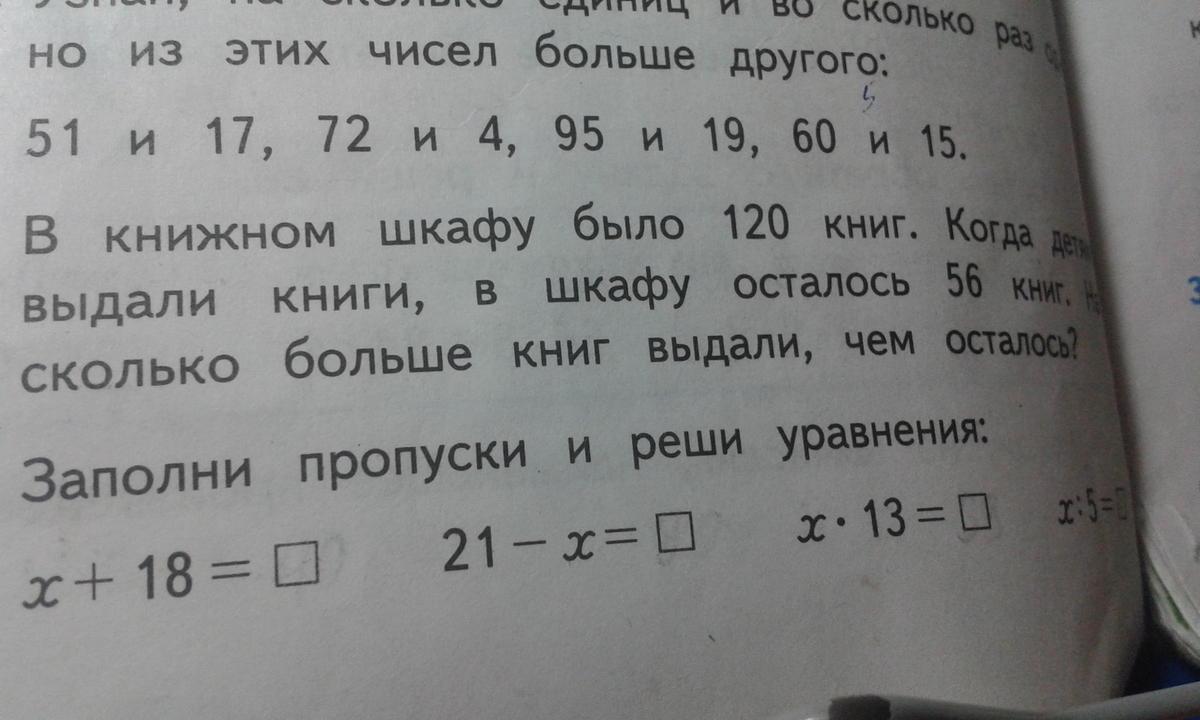 в книжном шкафу было 120 книг.когда детям выдали книги в шкафу осталось 56книг на сколька больше книг выдали чем осталось