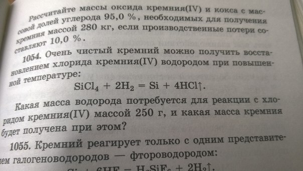 из уравнения реакции видно, что n(H2) = n(SiCl4)x2 = [m(SiCl4)/M(SiCl4)]x2 = [250/170]x2 = 2,94 моль, где M(SiCl4) = 28+35,5x4= 170 г/моль.