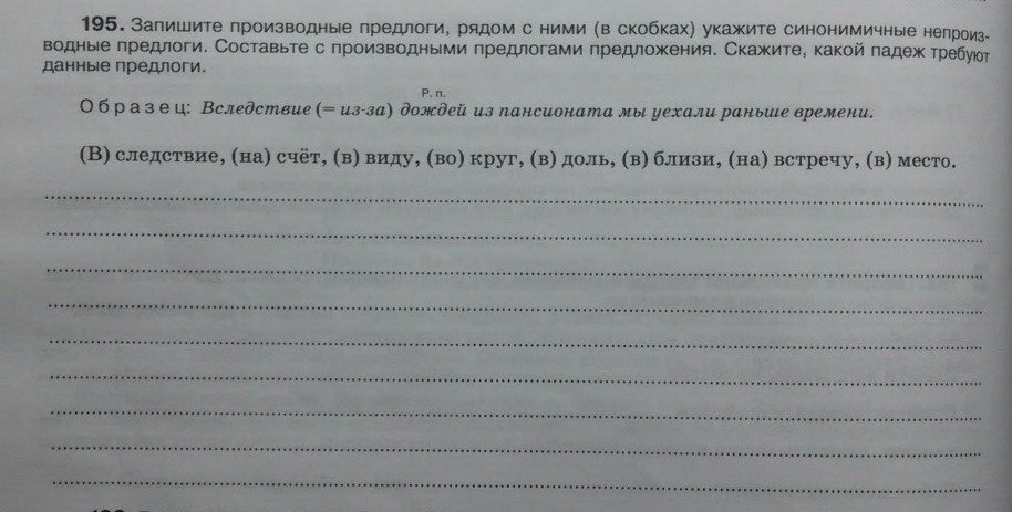 1)Неурожай вследствие засухи.2) Беседовали насчет(=о) сына. 3)Задержка ввиду(=из-за) ремонта.4)Вокруг(=около)него собаки.5)Вдоль(=у,около) дома забор.6)Вблизи(=у,около)магазина грязь.7)Бежал навстречу(=к) брату.8)Вместо(=за) него, дежурю я.