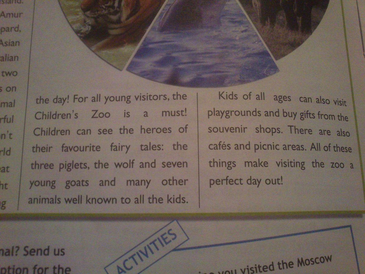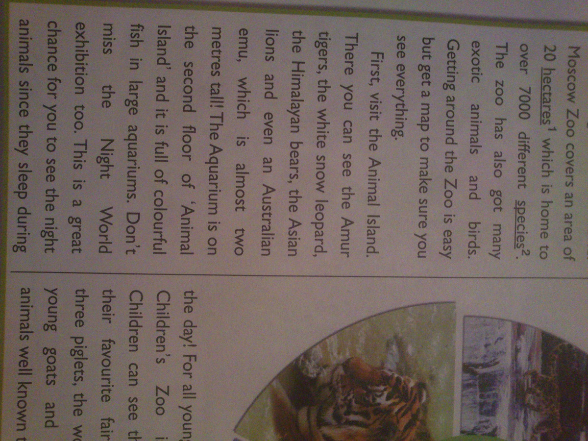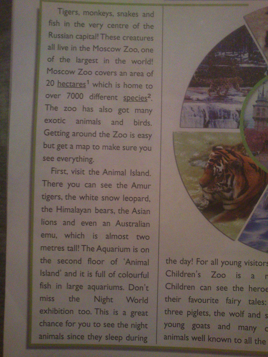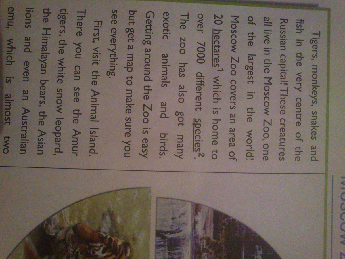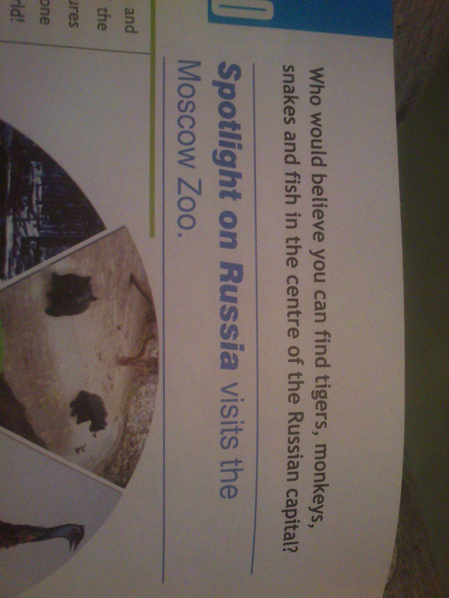 ПОМОГИТЕ С ПЕРЕВОДОМ ТЕКСТА spotlight on russia visits the moscow zoo.( переведите название и сам текст)