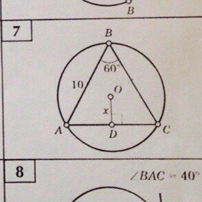 Тогда АД = (1/3)h (свойство пересечения медиан), где h - высота треугольника (она же и медиана), равна 10*cos 30 = 10*(√3/2) = 5√3.