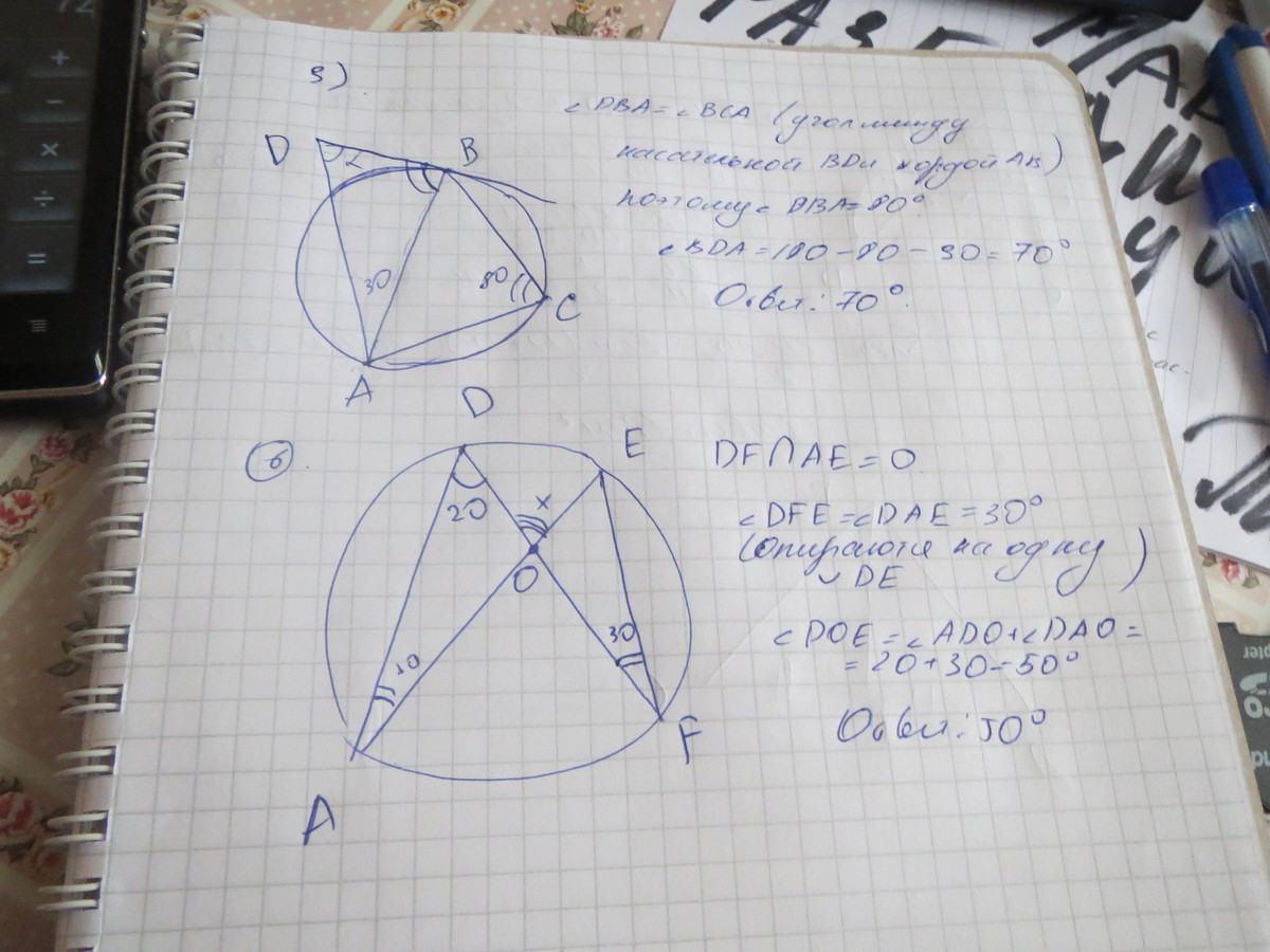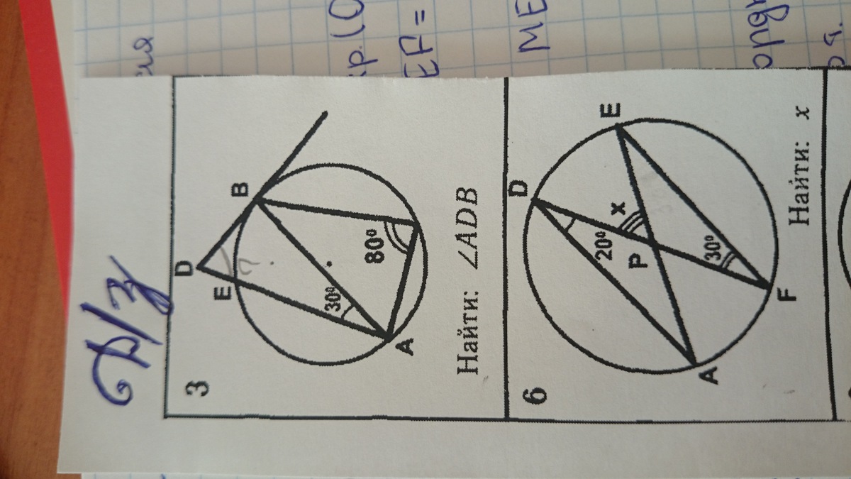 2) Найти угол DPE, образованный пересечением двух хорд.