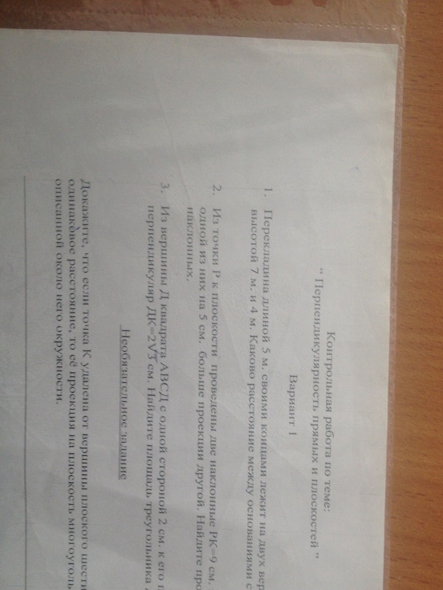 Перекладина длинной 5м.своим концами лежит на 2 двух вертикальных столбах высотой 7м.и 4 и.Каково расстояние между основаниями столбов