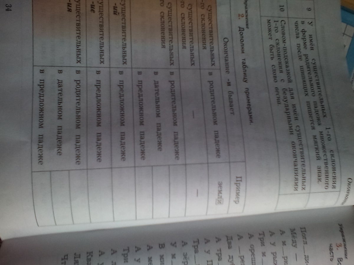 задание 2- окончание "и" бывает не видно начало, какие склонения указаны