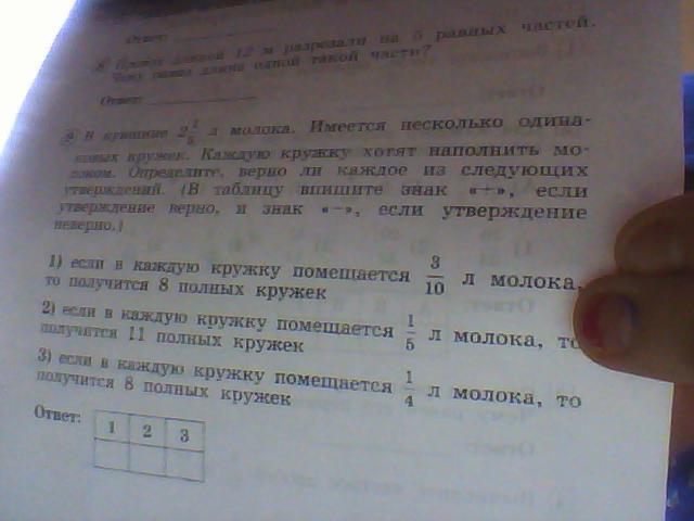 3)если в каждую кружку помещается 1\4 л молока,то получится 8 полных кружек.