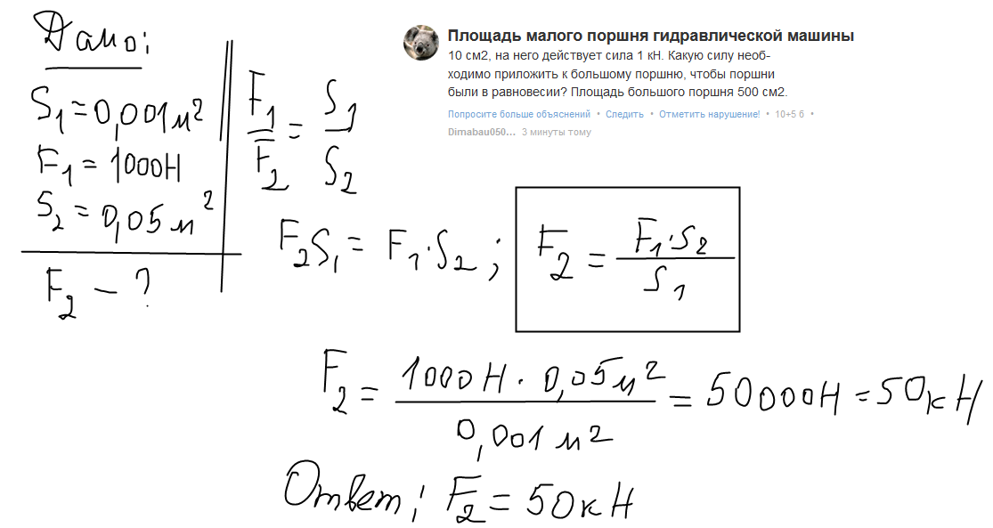 были в равновесии? Площадь большого поршня 500 см2.