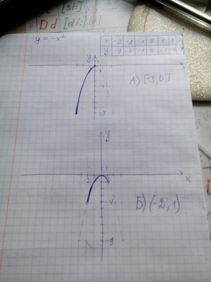 Постройте график функции у=-х^2 на заданном промежутке