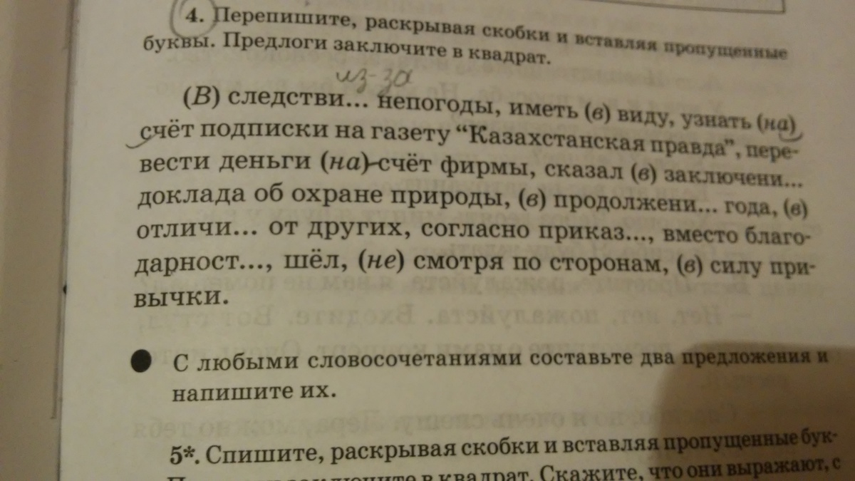В следствии непогоды, иметь в виду, узнать насчёт подписки на газету "Казахстанская правда", перевести деньги на счёт фирмы, сказал в заключении доклада об охране природы, в продолжение года, в отличии от других, согласно приказу, вместо благодарности, шёл, не смотря по сторонам, в силу привычки.