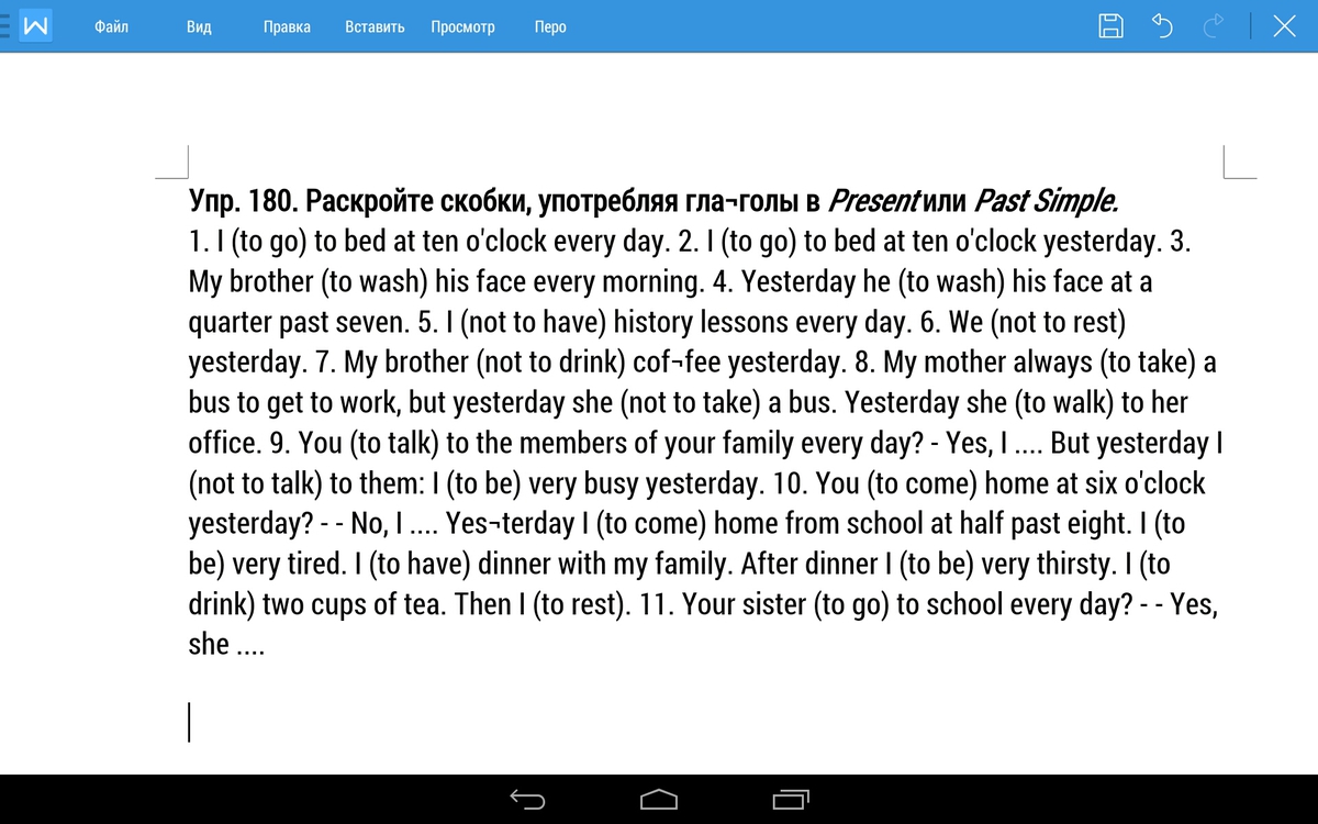 10.came,came,was, had,was,drunk,rested