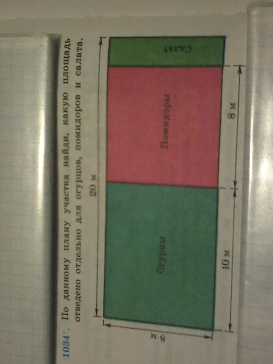 Ответ. участок 80 м2 с огурцами, участок 64 м2 с помидорами, участок 16 м2 с салатом