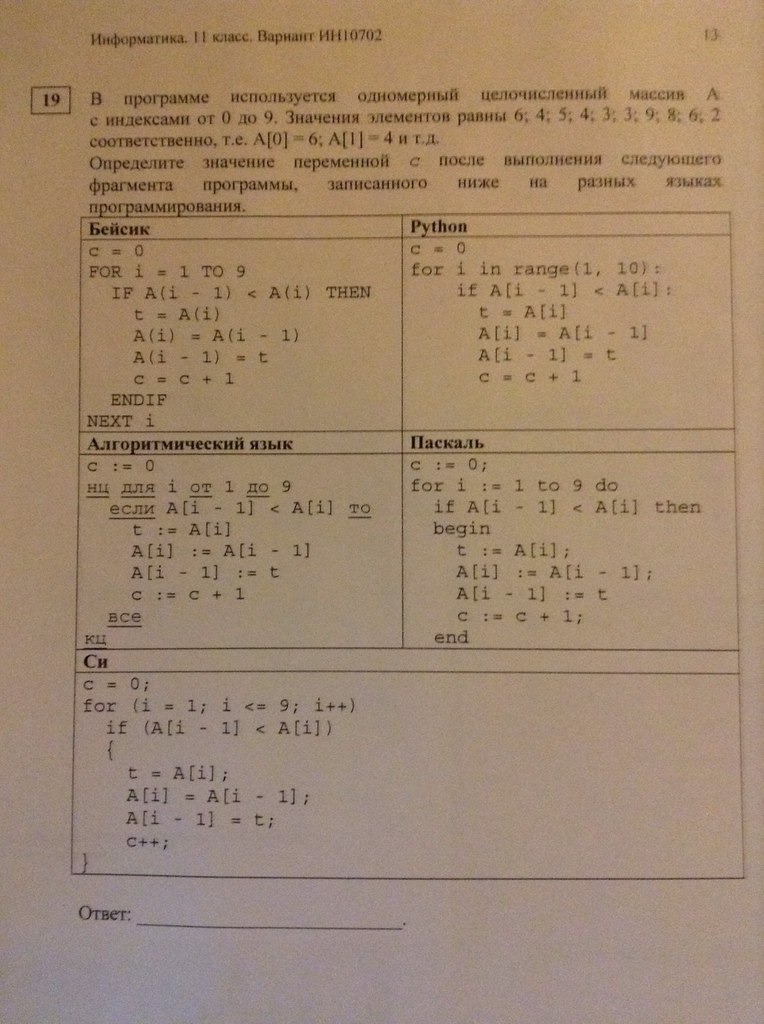 " если последующий элемент массива больше предыдущего, то С увеличивается на 1 и происходит замена местами этих элементов, последующие сравнения элементов - с учётом произошедшего обмена значениями"