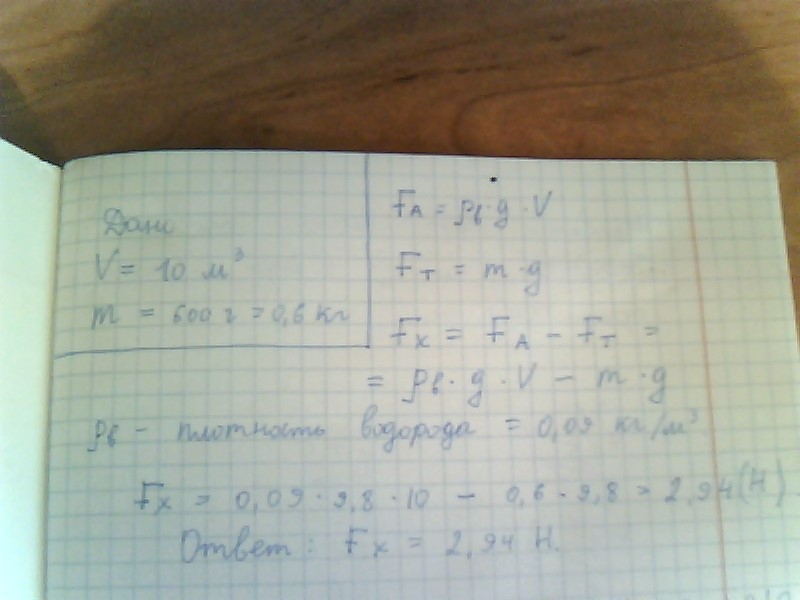 Радиозонд объемом 10м3 наполнен водородом. какого веса радиоаппарату он может поднять в воздух,если она его оболочка имеет массу 600 г?