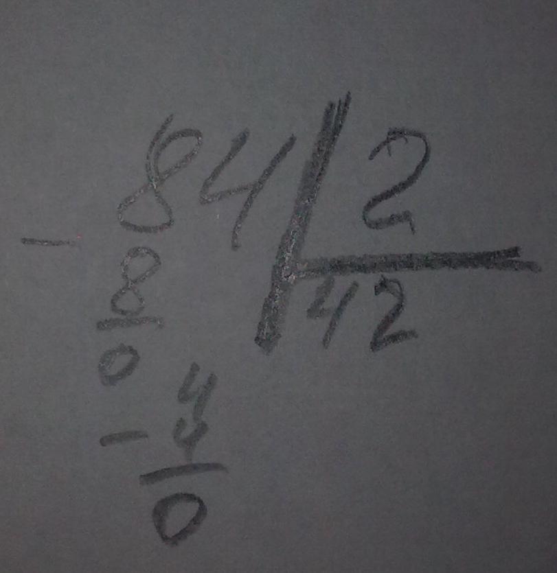 здравствуйте ещё раз я просто ошиблась не 8 а надо было мне написать 84:2но столбиком надо .помагите пожалуйста,уменя еще много решение спасибо вам большое