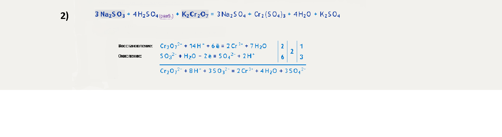 2) K2Cr2O7+Na2SO3+H2SO4 ----->