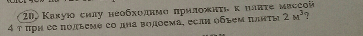 F = mg - pgV =g*(m-Vp)=9,8*( 4000 - 1000 * 2 )= 19600 (Н)
