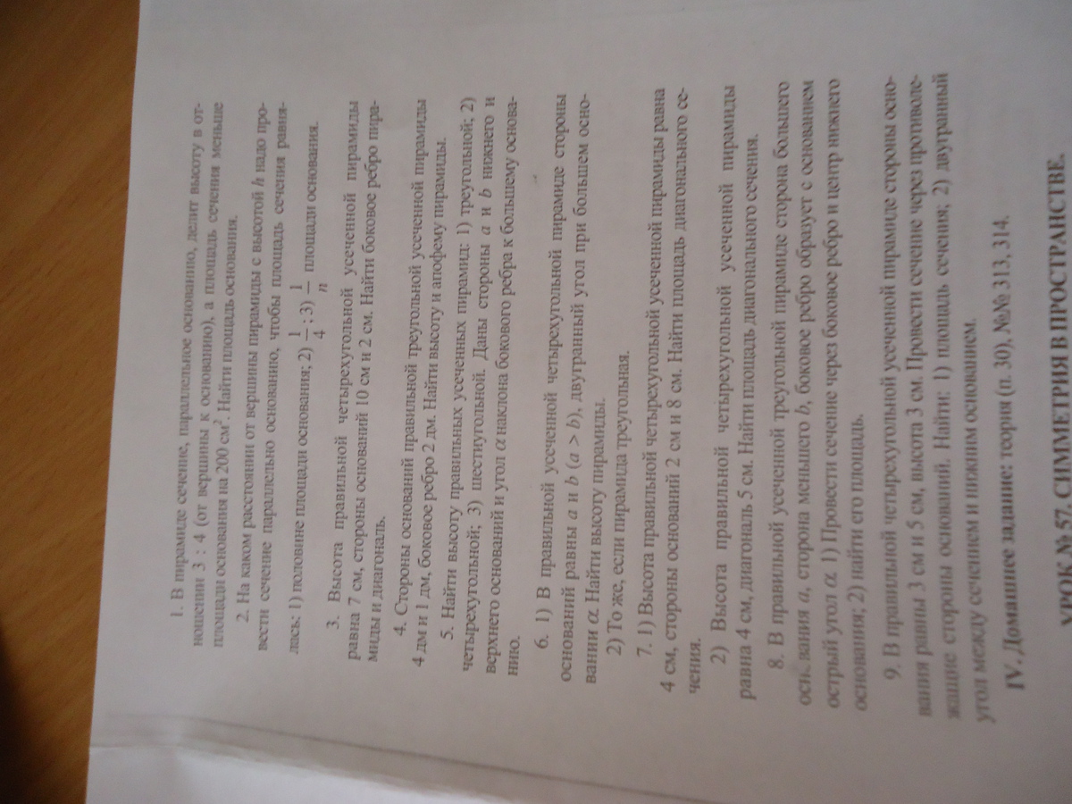 Задача!!!На каком расстоянии от вершины пирамиды с высотой h надо провести сечение параллельно основанию, чтобы площадь сечения равнялась: 1) половине площади основания; 2) 1/4,3) 1/n площади основания?