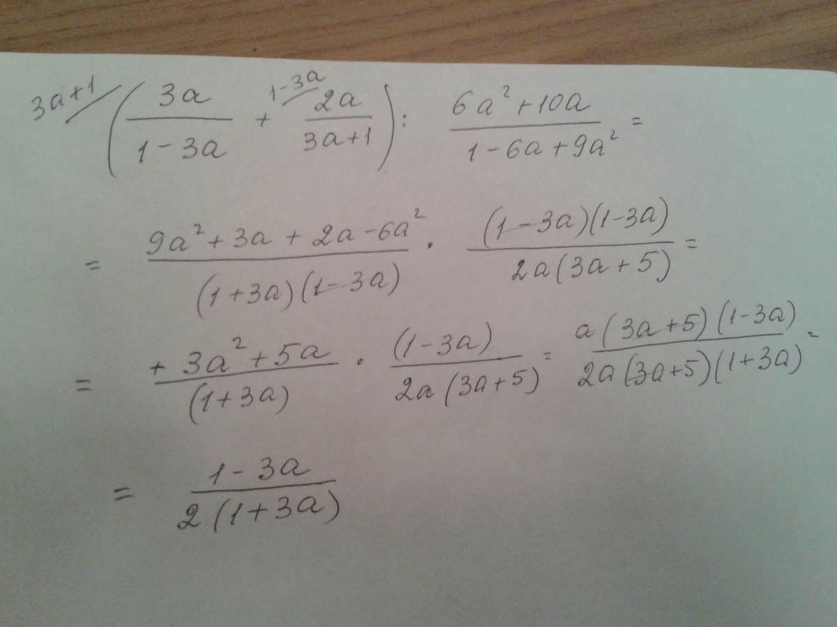 3) а(3а+5) : 2а(3а+5) = а(3а+5) * (1-3а)² = 1-3а = 1-3а