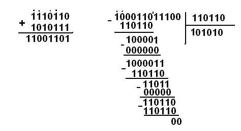 А) 1110110 + 1010111; Б)100011011100 : 110110